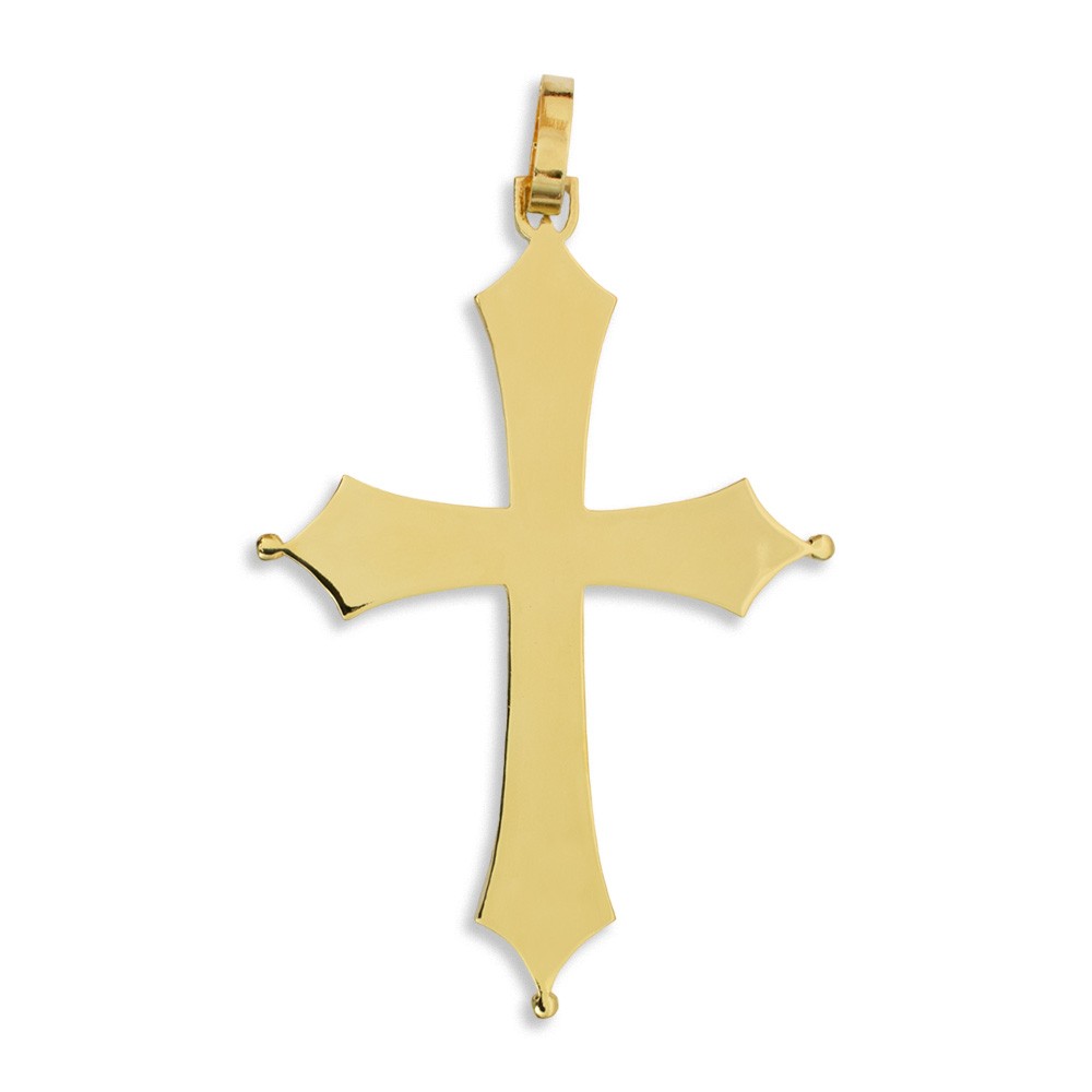 Croce pettorale con delicate incisioni sul fronte, realizzata interamente in argento 925 con finitura dorata.