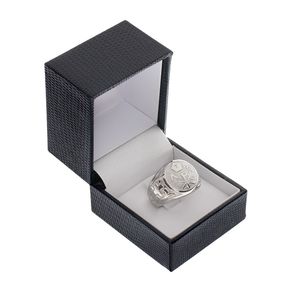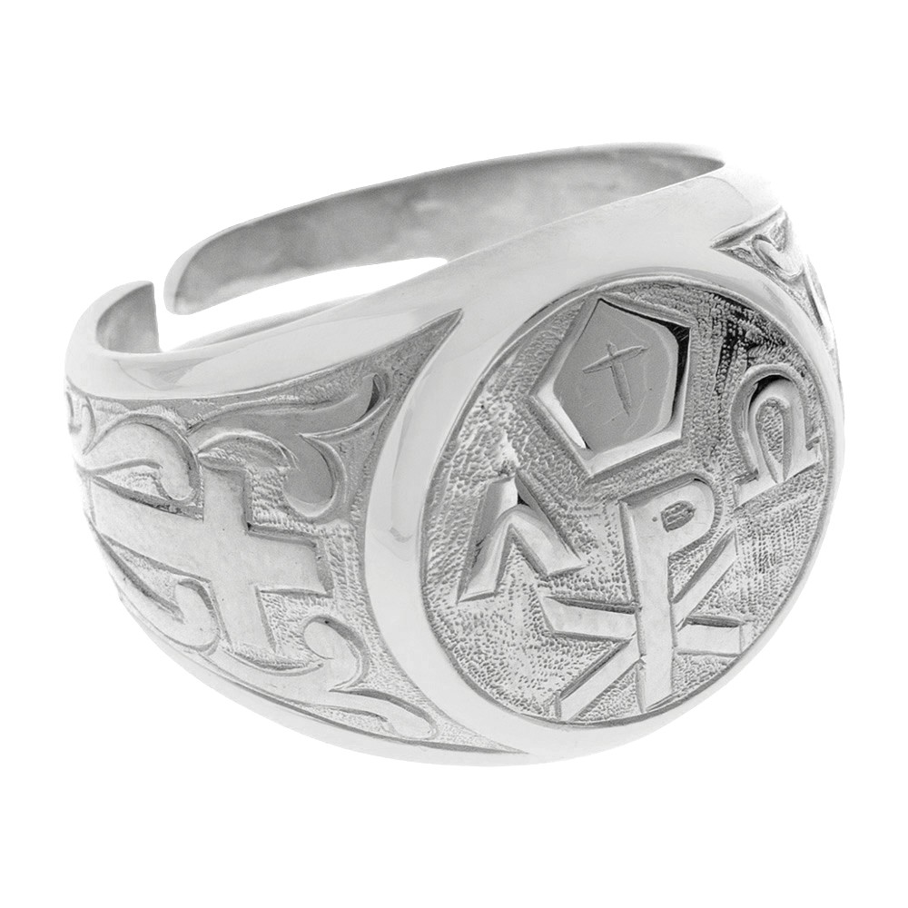 Anello vescovo XP, Alfa e Omega, realizzato interamente in argento 925.