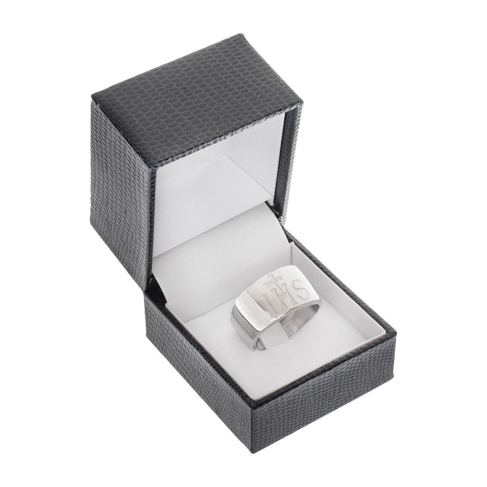 Anello episcopale JHS realizzato interamente in argento 925.