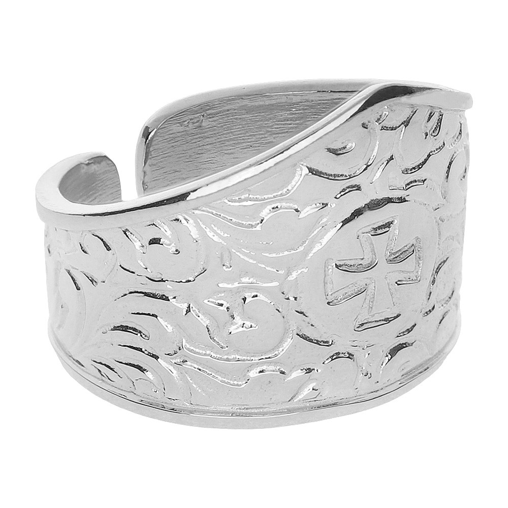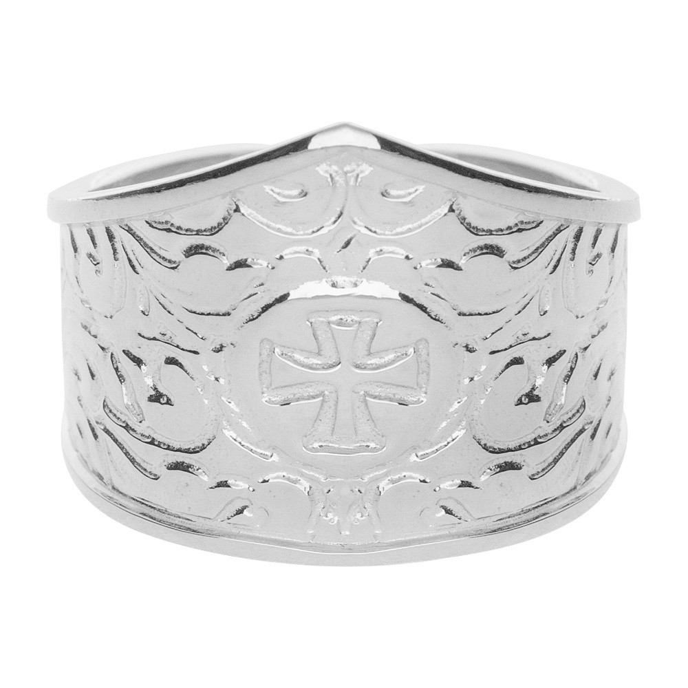 Anello da vescovo con croce realizzato interamente in argento 925 con finitura color argentata.