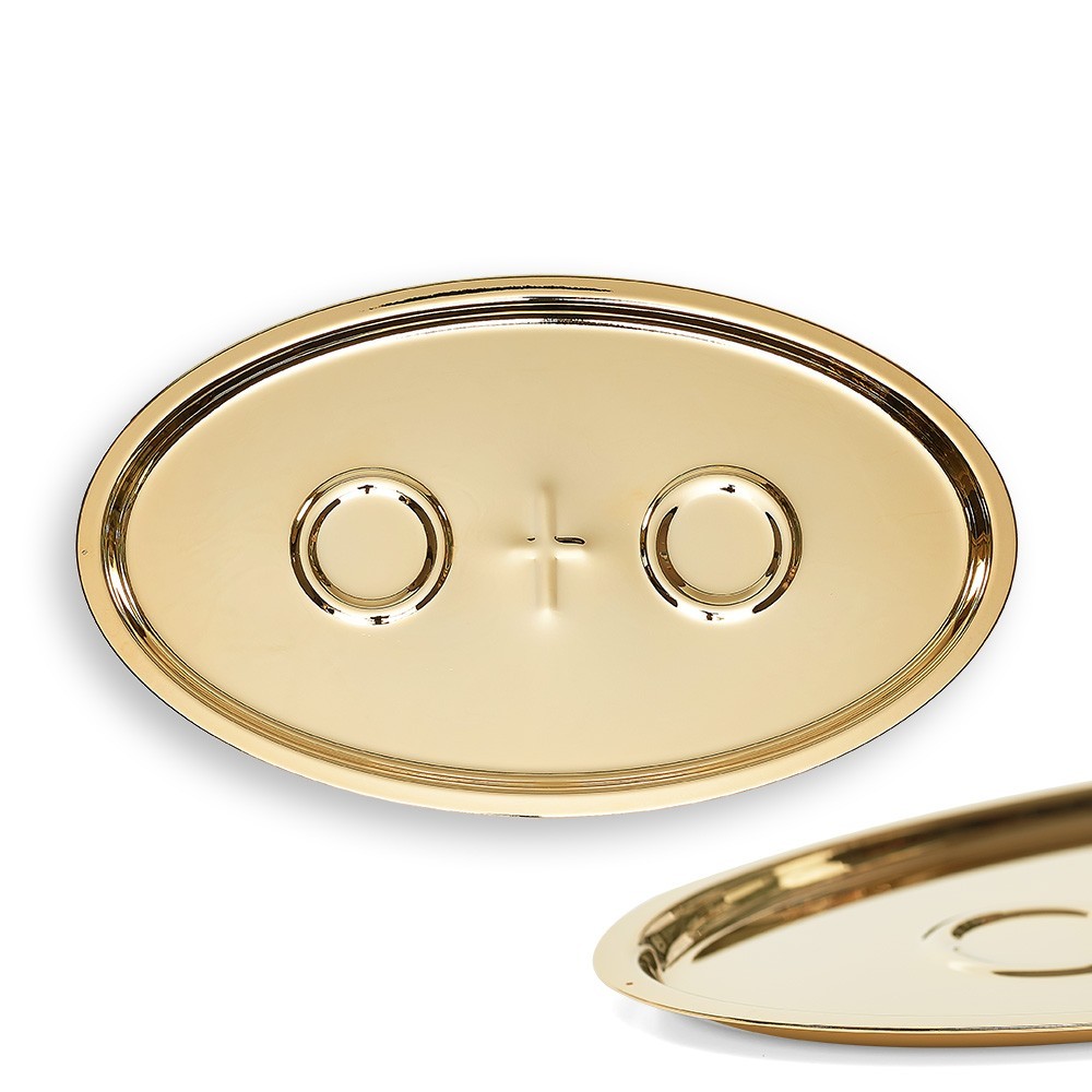 Vassoio Sposi in ottone dorato con incavo per inserire le fedi nuziali il giorno del matrimonio. Produzione 100% italiana.