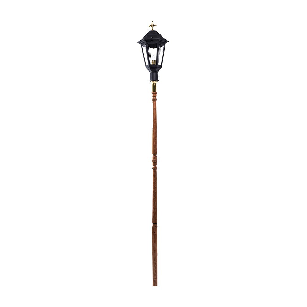 Lampione da processione elettrico, di colore nero completo di manico in legno in tinta rovere. Articolo di ottima fattura, eseguito interamente da un'azienda italiana.