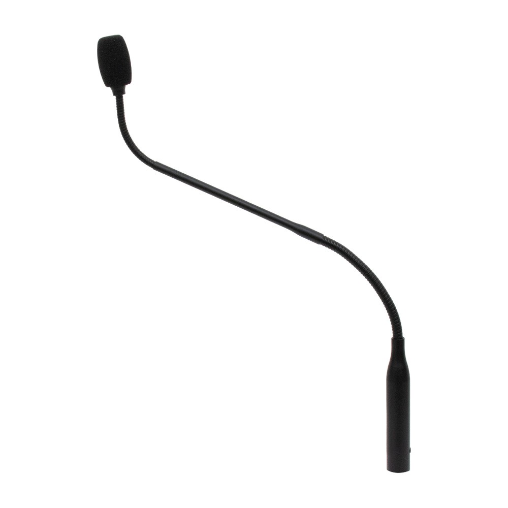 Realizzato con doppio snodo, capsula a condensatore, cardioide, preamplificatore integrato, anti bump schermo antivento, con risposta in frequenza 50-15.000Hz, connettore XLRM.