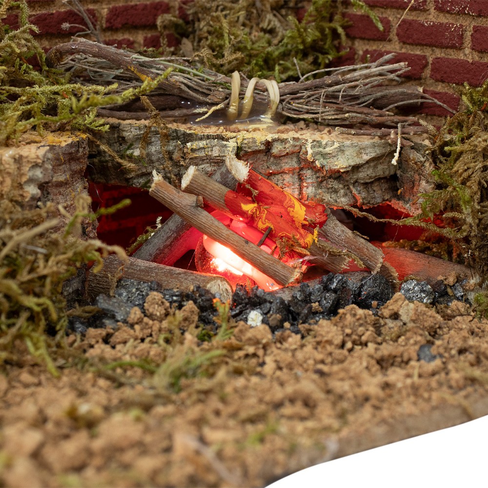 Fuoco per ambientazione presepe, realizzato con luce led che simula il fuoco.