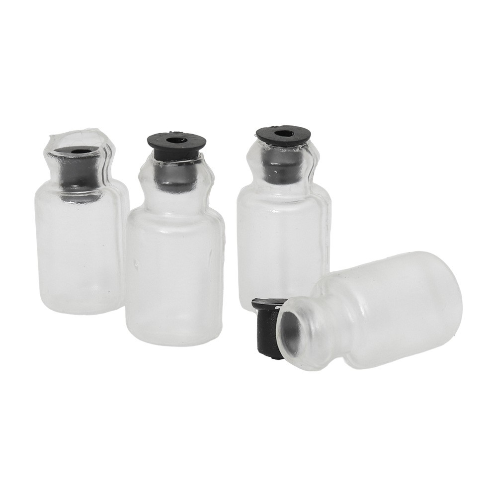 Il set è composto da 4 bottiglie e tappo in plastica, alte 2,5 cm.