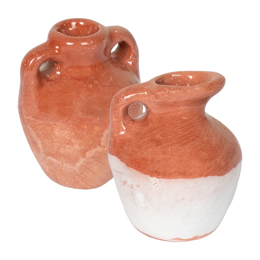 Set 2 pezzi di anfore smaltate tipo terracotta, alte 2,5 cm.
