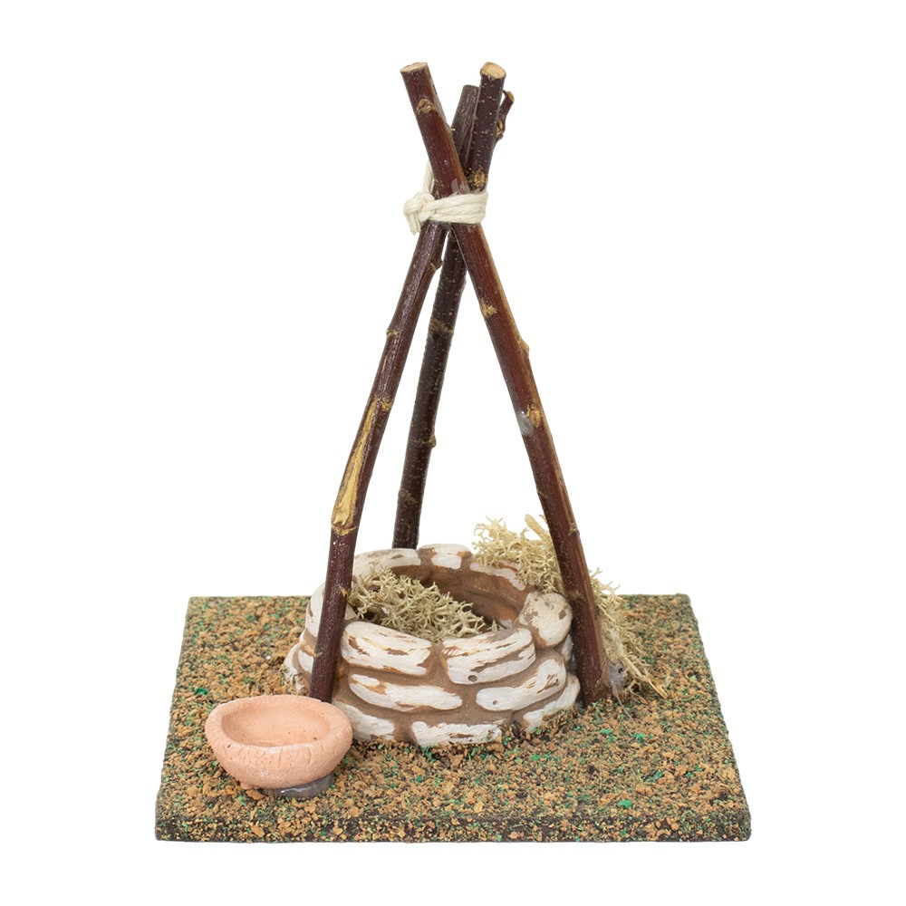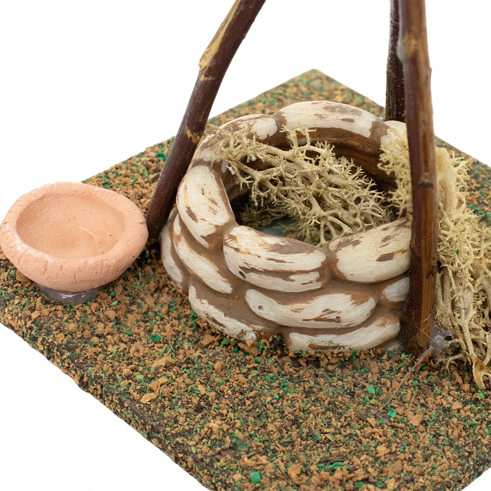 Accessorio per il presepe: Pozzo con base in sughero e aste in legno.