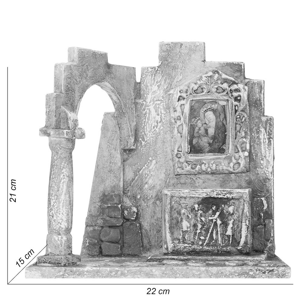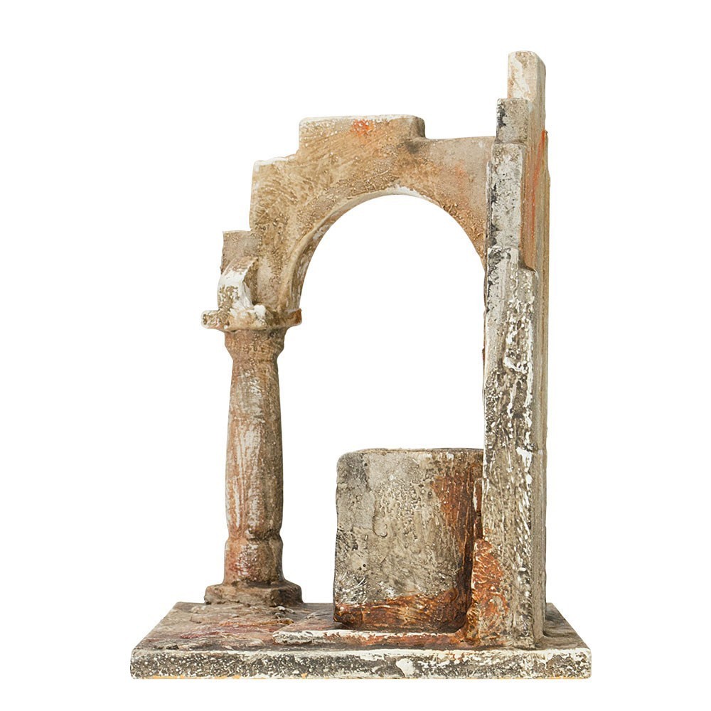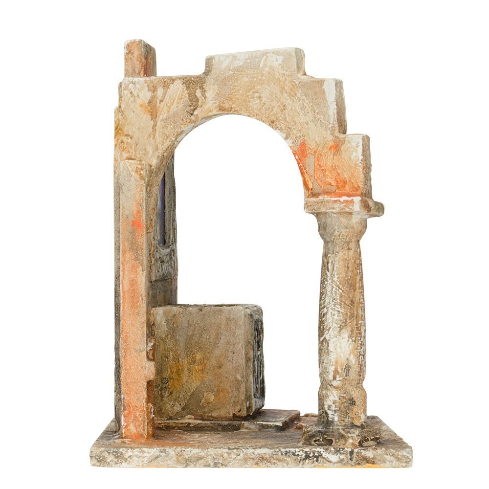 Sarcofago Antico con Quadro per il Presepe. Particolare e introvabile scena, un arco con accanto un sarcofago ed un edicola della Vergine. Ideale per statue del presepe 12 cm. Misure: cm 22x15x21h.