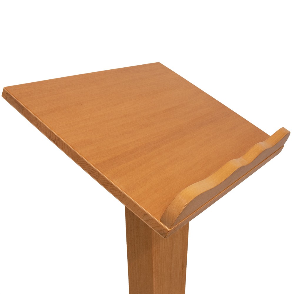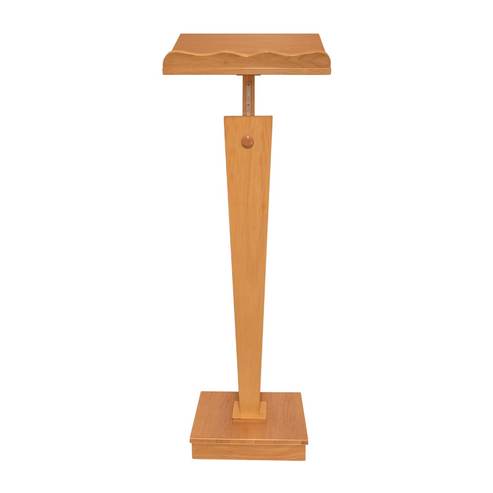 Ambone in legno chiaro a colonna regolabile, altezza massima 140 cm.