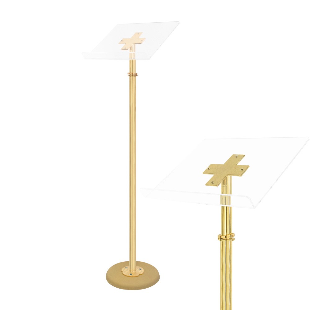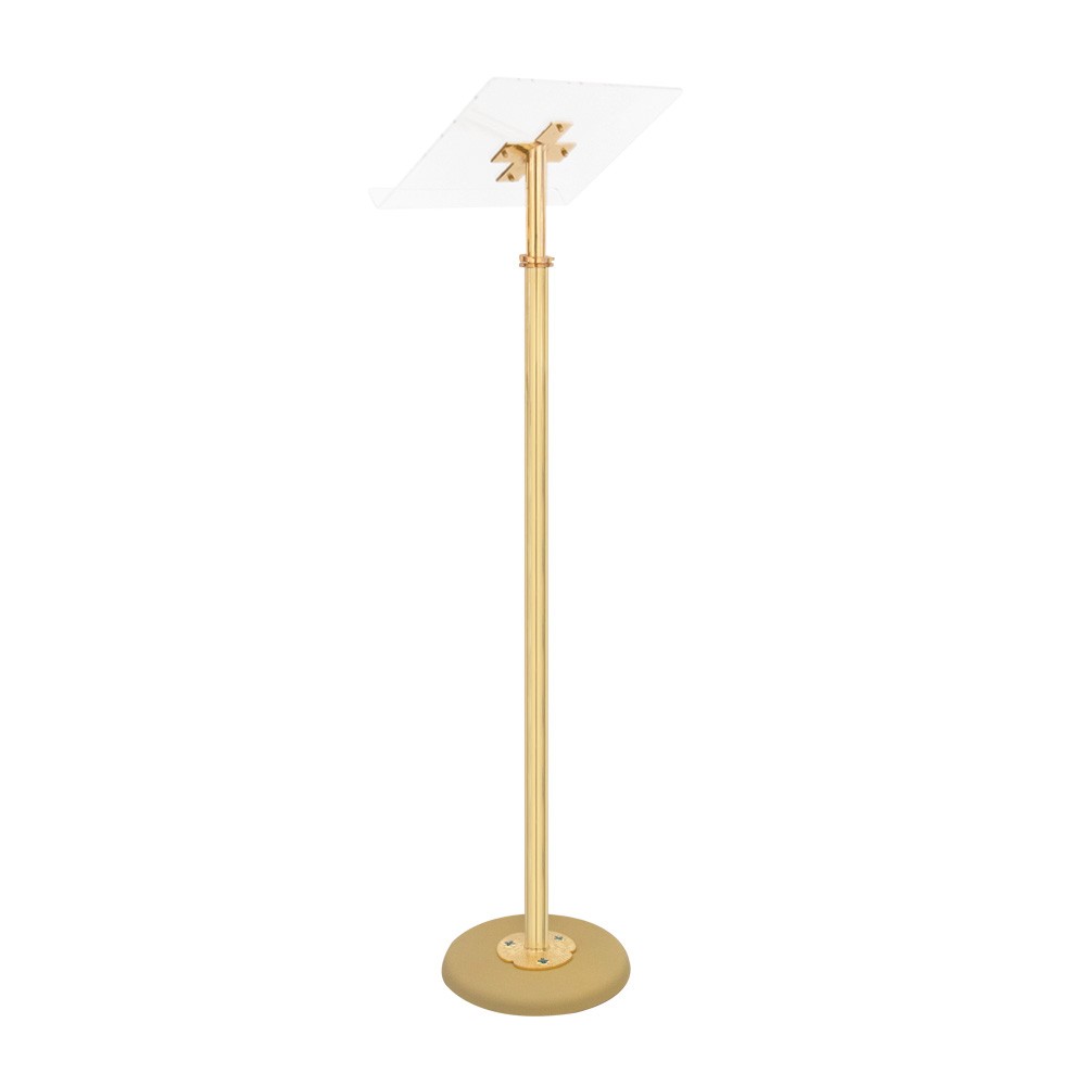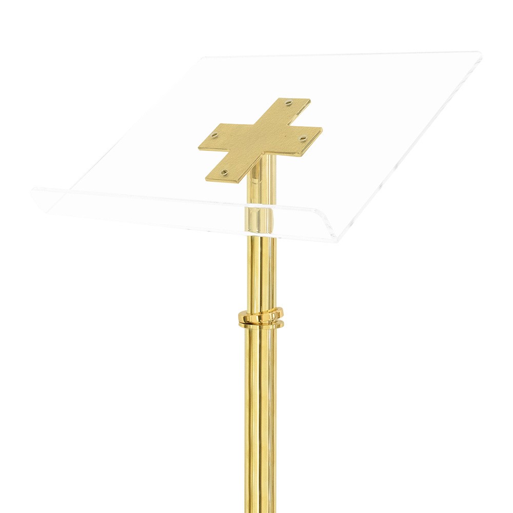 Leggio da altare in ottone dorato e piano in plexiglass.