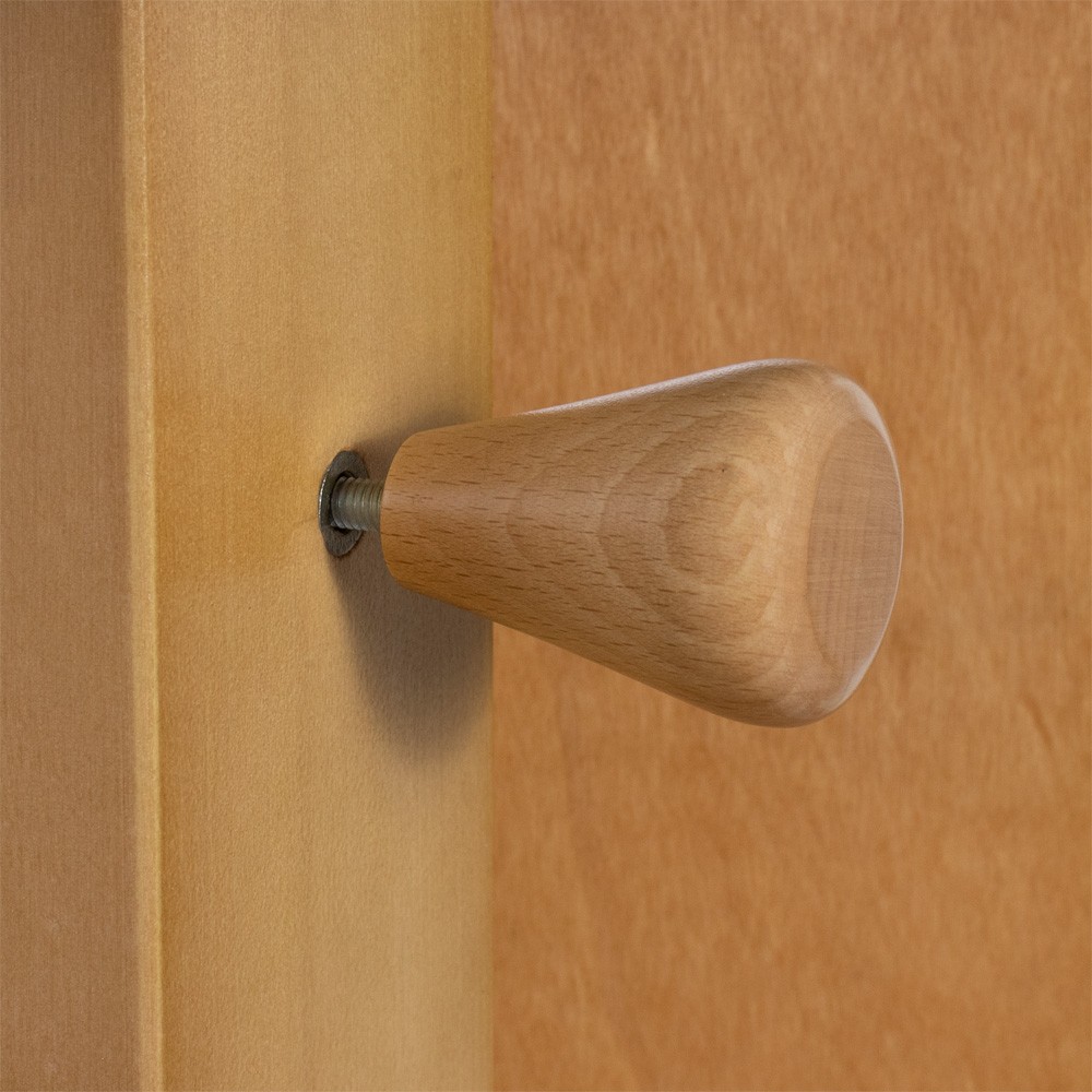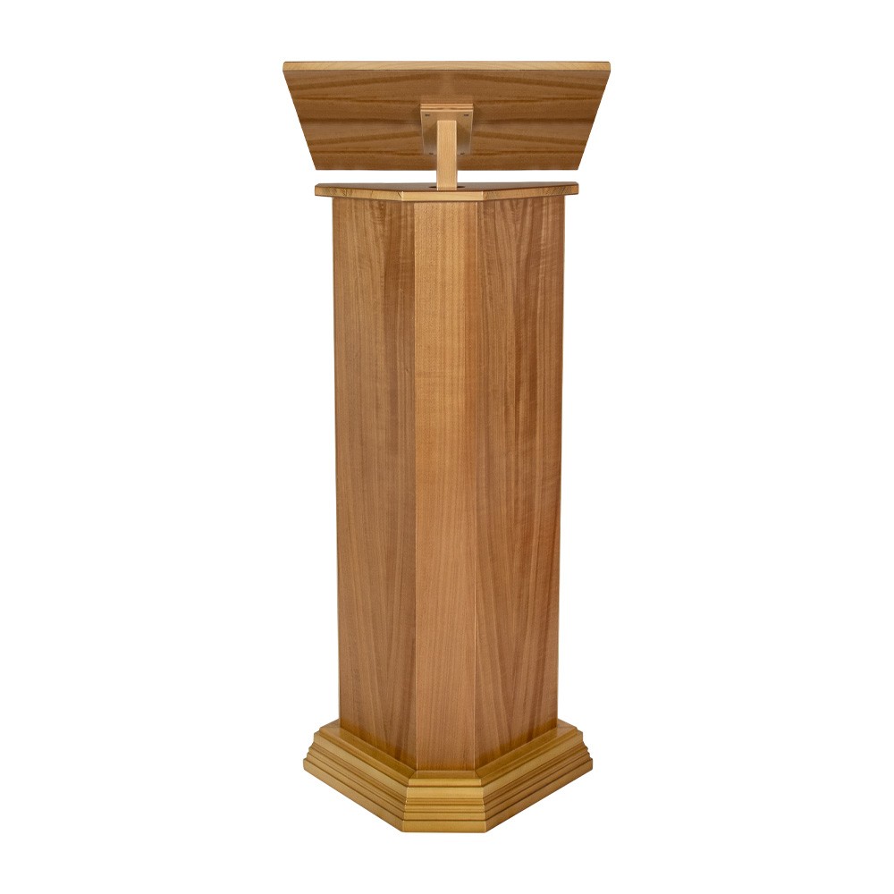 Ambone in legno chiaro a colonna regolabile, altezza massima 140 cm.