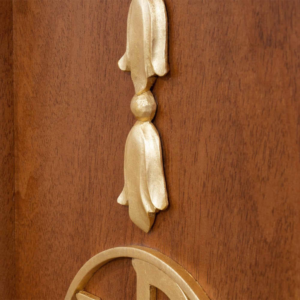 Realizzato in legno massiccio e arricchito in foglia oro.