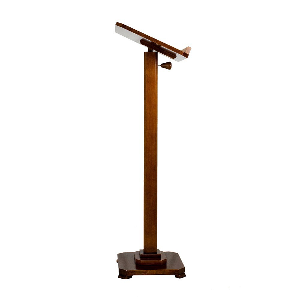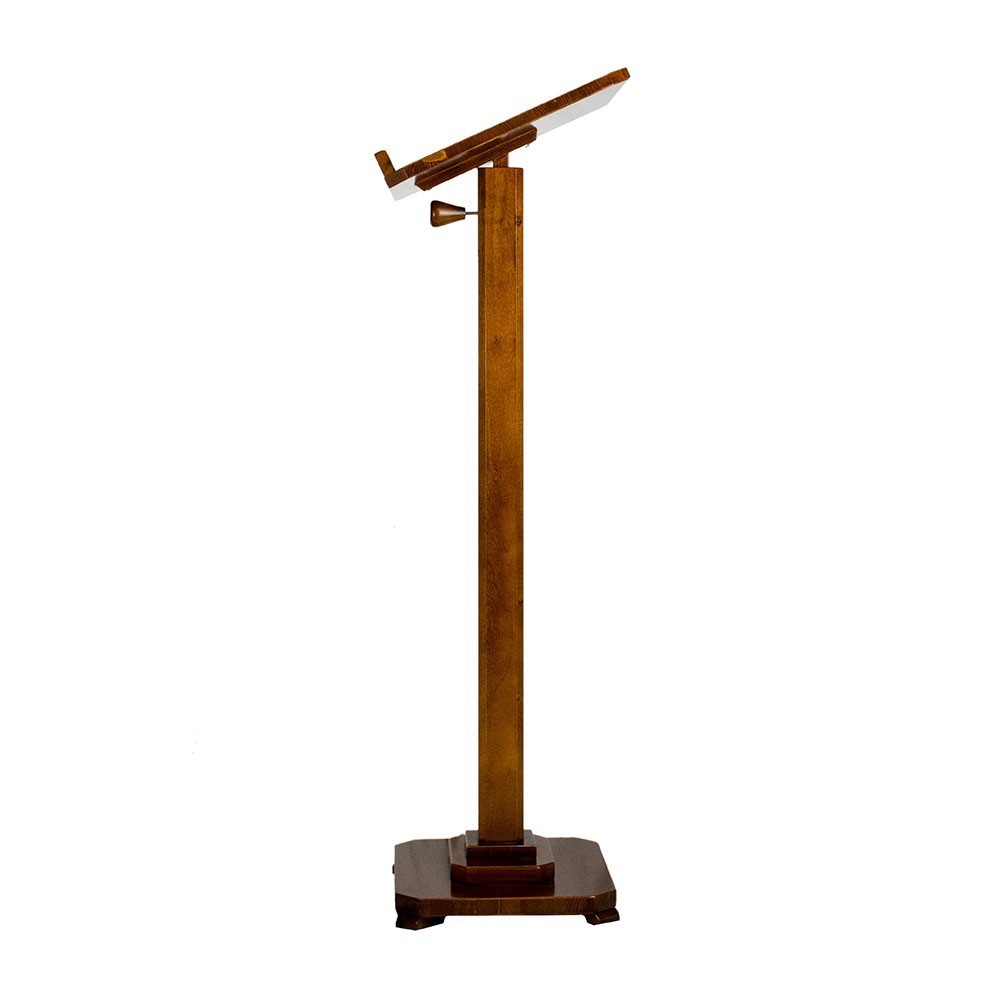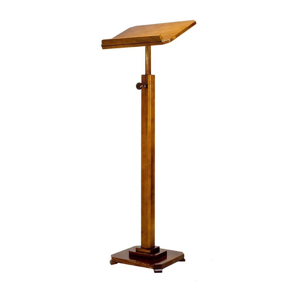 Leggio semplice con colonna in legno massello. Il piano d'appoggio è realizzato con bordi sagomati, la colonna è regolabile in altezza. Articolo con finiture di ottima qualità, prodotto e realizzato da un'azienda italiana.