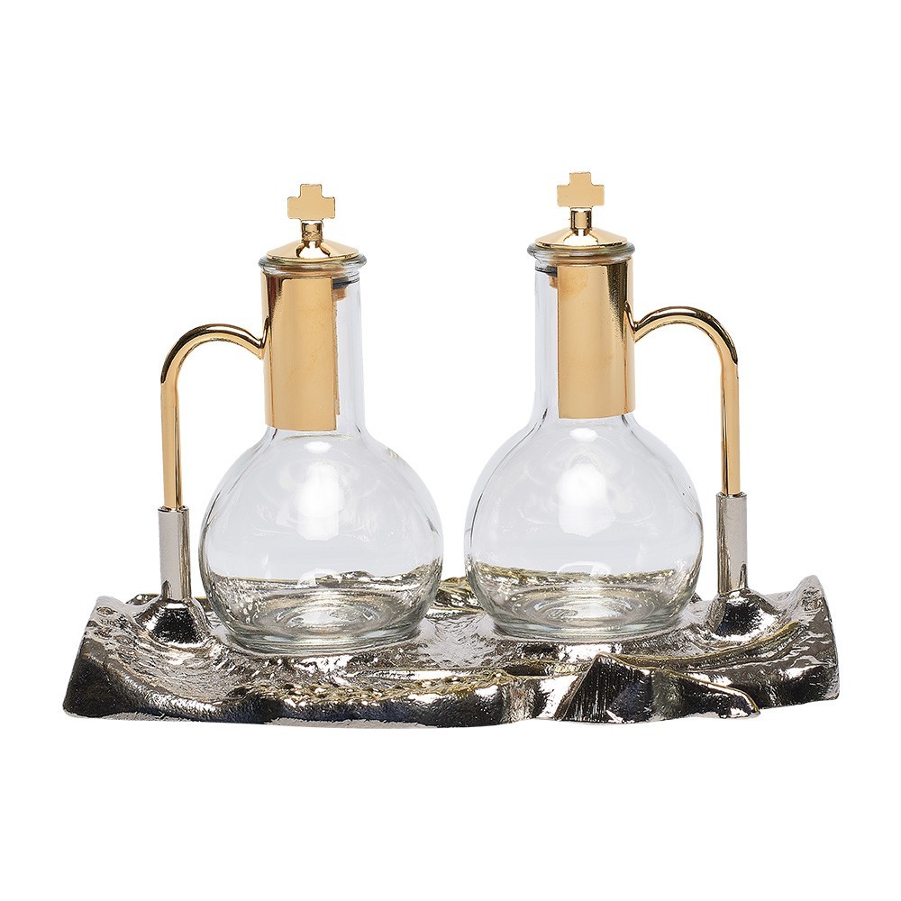 Set ampolline acqua e vino Messa con vassoio, 19x9 cm - h 12 cm.