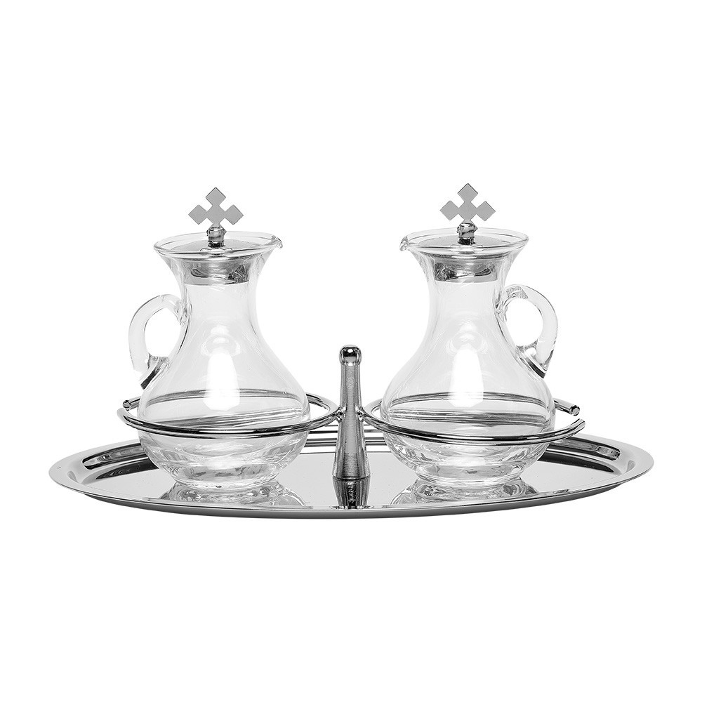 Set ampolline acqua e vino Messa con vassoio, 19x9 cm - h 12 cm.