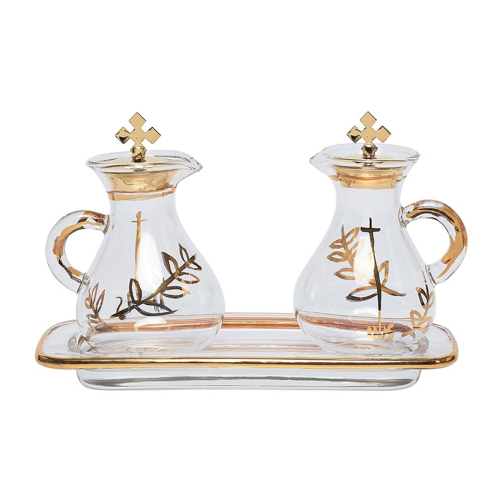 Servizio ampolle ermetiche acqua e vino per Messa.