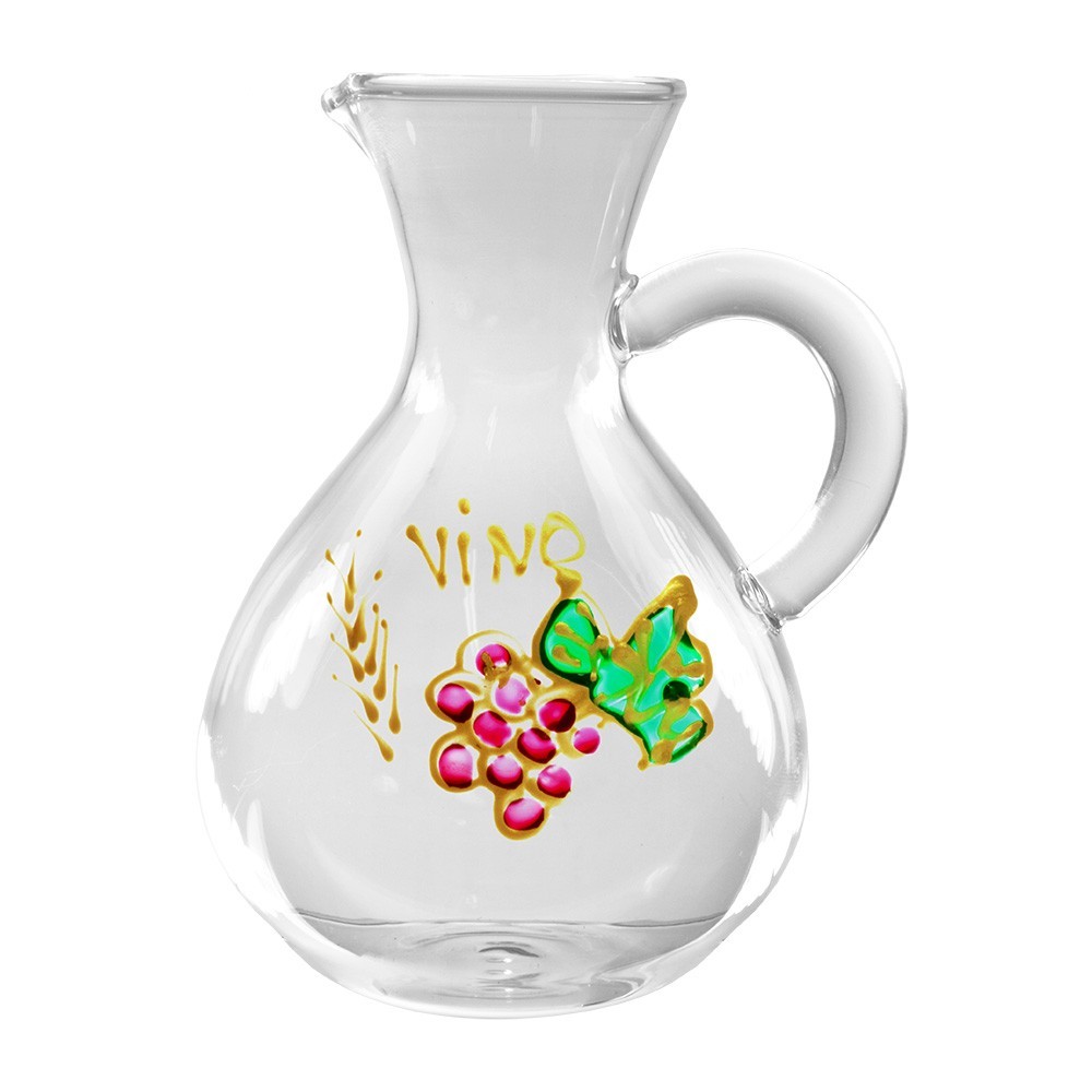 Consegna in 2 settimaneCoppia ampolline acqua e vino in vetro con decori dipinti a mano.