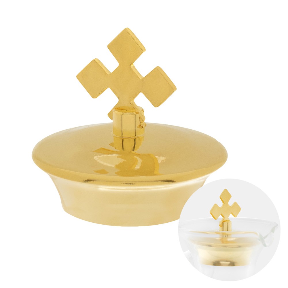 Realizzato interamente in ottone dorato con croce.