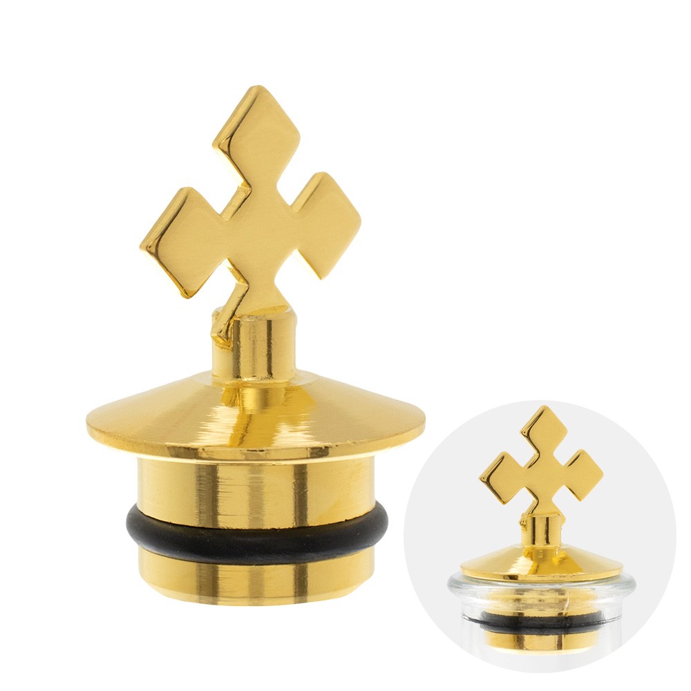 Ricambio tappo per ampollina acqua e vino in metallo con finitura dorata.