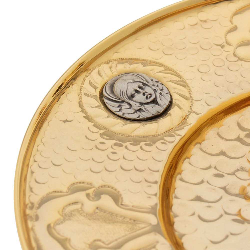 Set ampolline liturgiche acqua e vino per la santa messa, realizzate e cesellate a mano, in elegante ottone con finitura oro e argento.