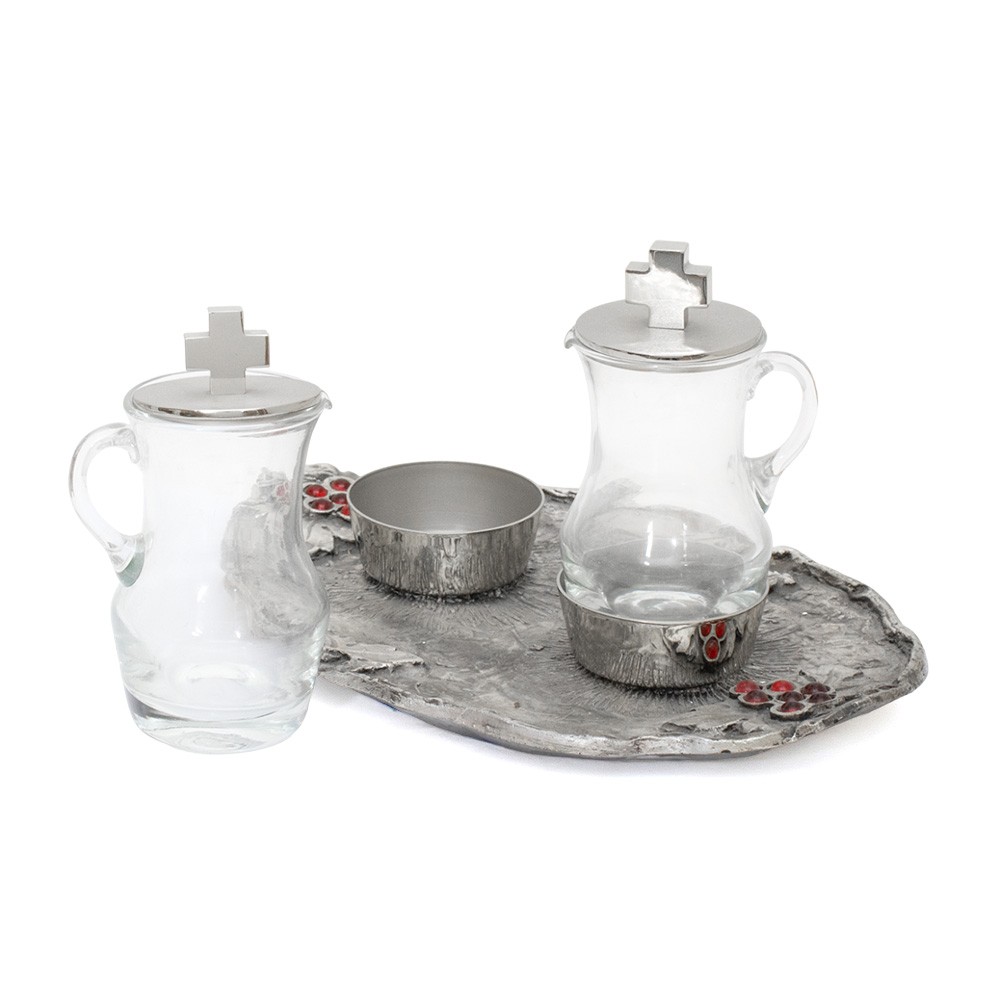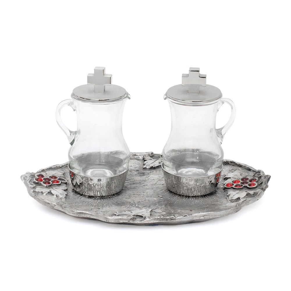 Set ampolline acqua e vino per la messa, complete di vassoio.