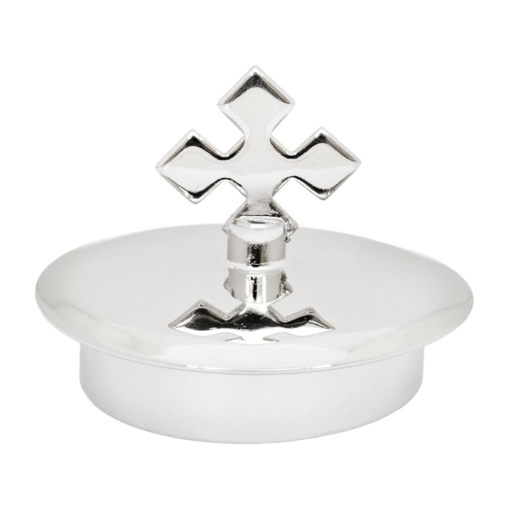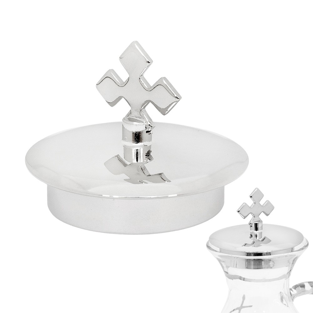Ricambio tappo per ampolline liturgiche acqua e vino, realizzato in metallo tono argento.