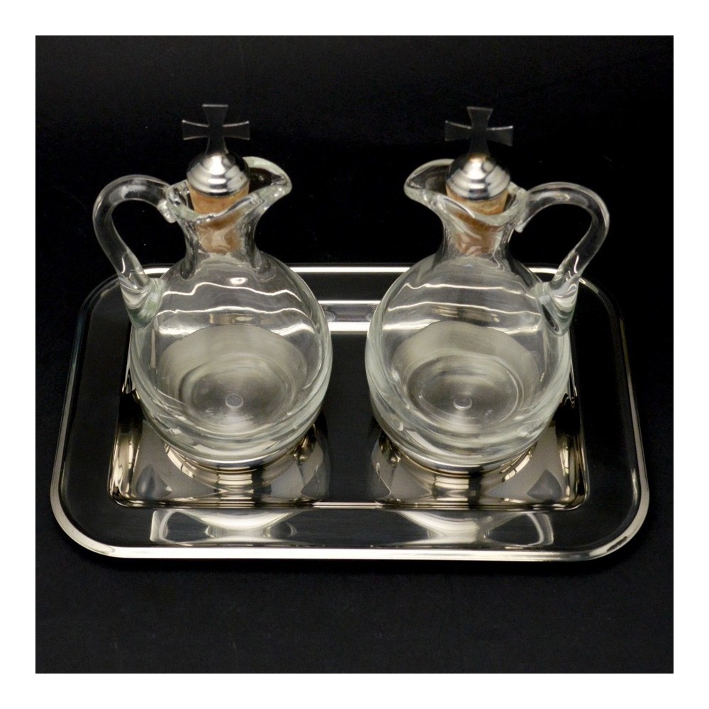 Set ampolline acqua e vino Messa con vassoio, 19x9 cm - h 12 cm.
