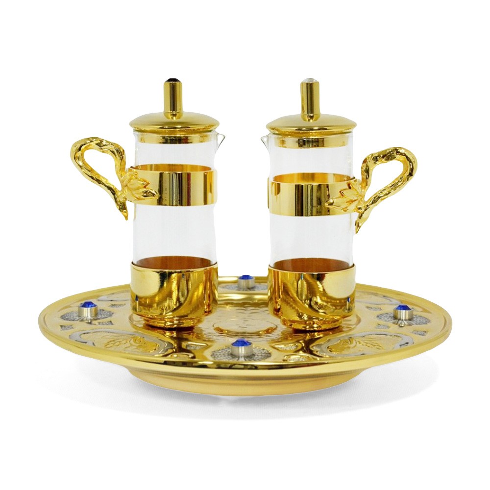 Servizio ampolle ermetiche acqua e vino per Messa.
