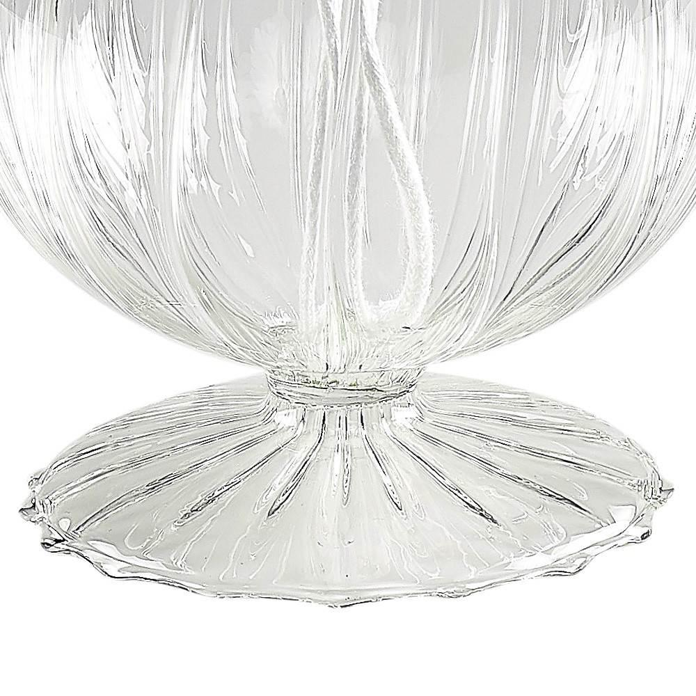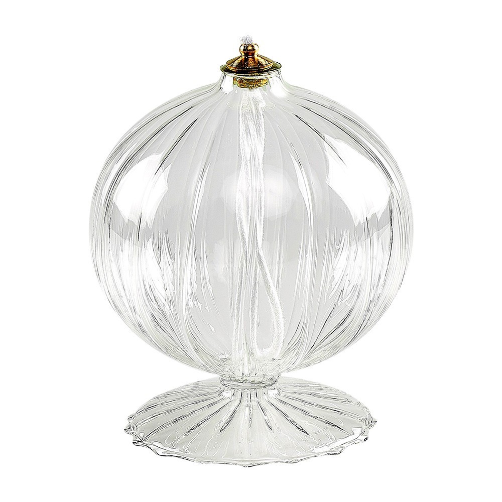 Lampada melograno con base per cera liquida realizzata in vetro trasparente rigato. Completa di stoppino e gigler. Prodotto italiano.