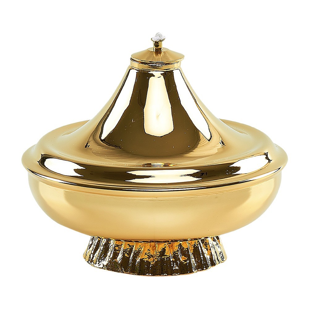 Lucernetta in ottone dorato con base finemente decorata. Produzione italiana