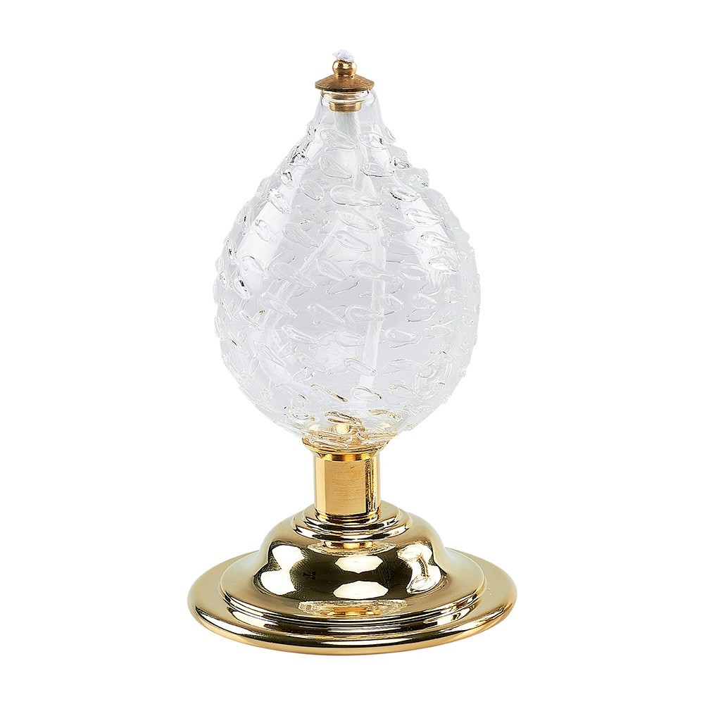 Lume a cera liquida con goccia in cristallo soffiato effetto "buccia d'arancia". La base è in ottone dorato. Viene fornito completo di stoppino e gigler.