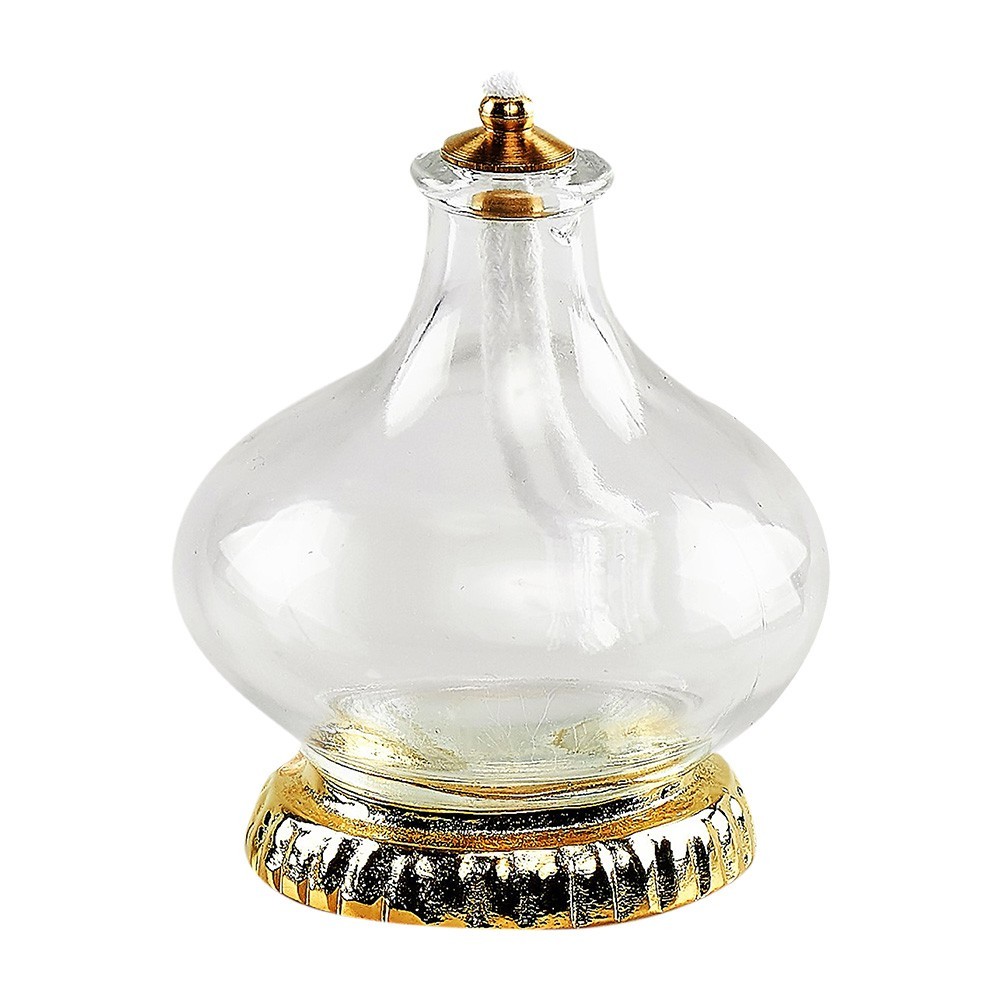 Lampada cipollina su base in ottone dorata. Viene fornita completa di stoppino e gigler. La lampada è alta 7,5 cm.