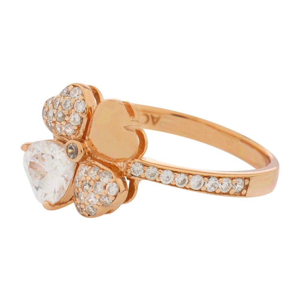 Elegante anello quadricuore in argento 925 finitura rosè e zirconi bianchi, collezione Amen quadricuore.