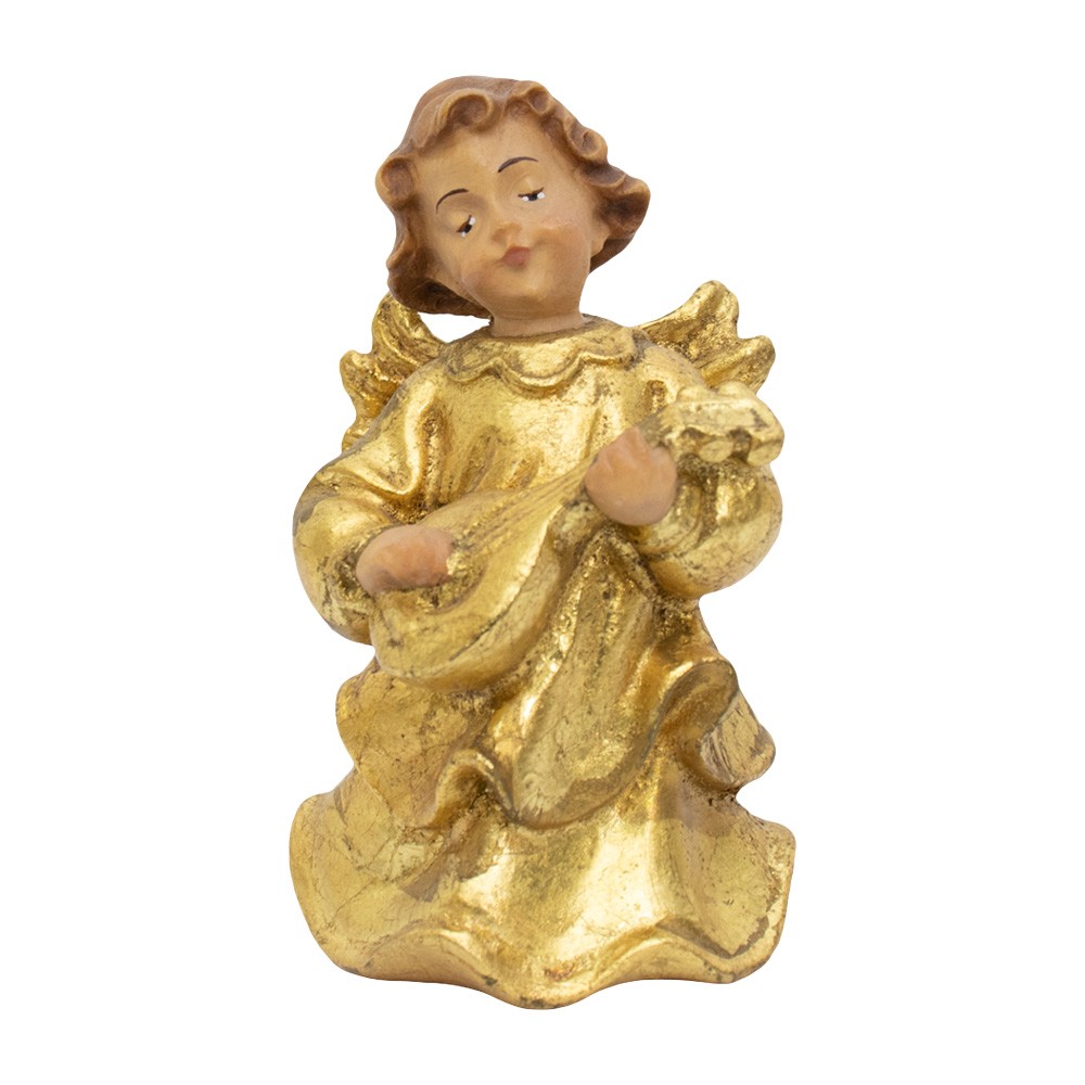 Angelo con violino legno e foglia oro, alto 8 cm.
