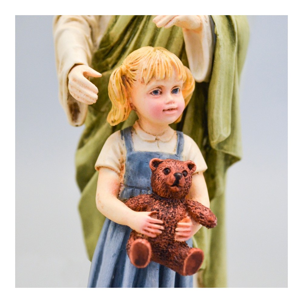 Statua Angelo Custode con bambina realizzata in resina. Dipinta a mano. La statua è un prodotto made in Italy. Scatolata.