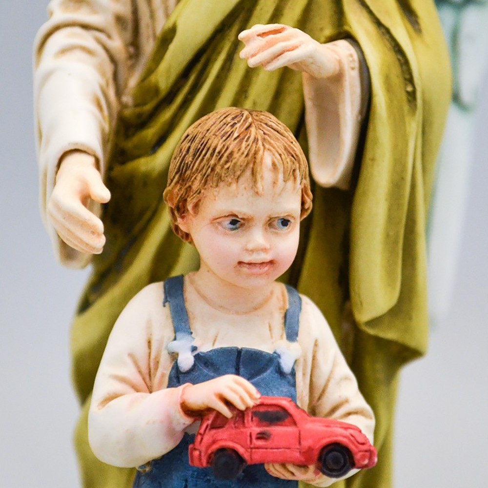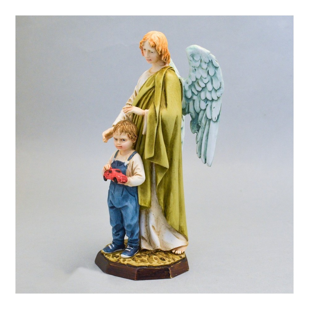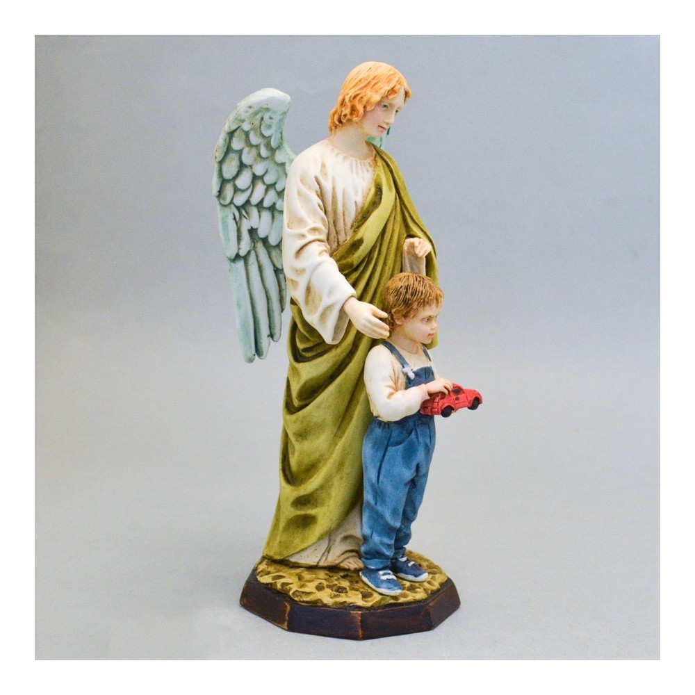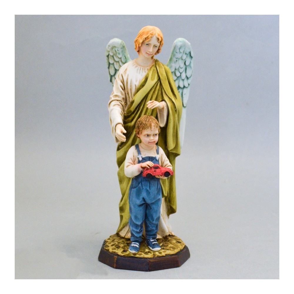 Statua Angelo Custode con bimba realizzata in resina. Dipinta a mano. La statua è un prodotto made in Italy. Scatolata.