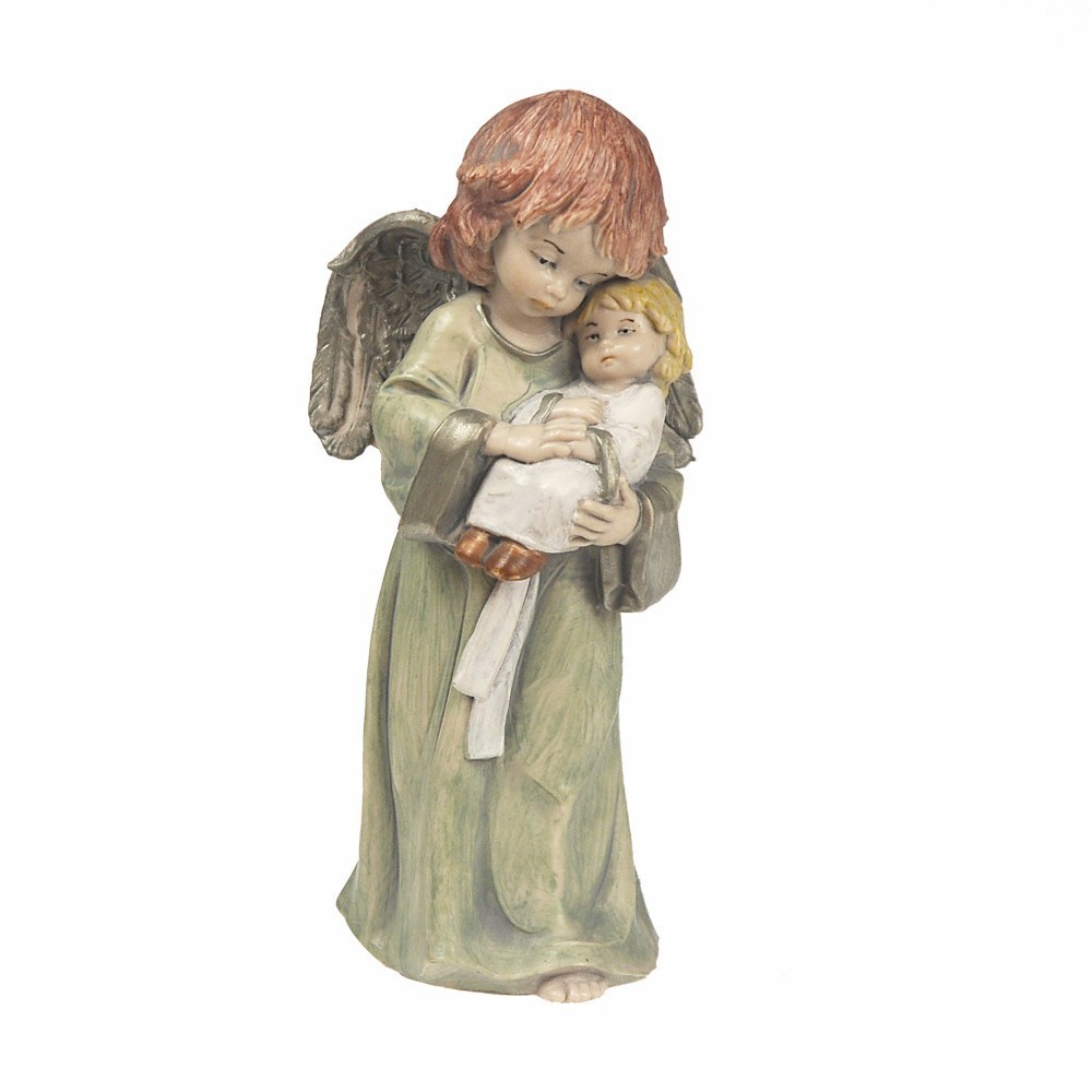 La statua raffigura un angioletto con un bambino in braccio. E' realizzata in PVC, interamente in Italia. Dipinta a mano con finitura "Tipo PORCELLANA".