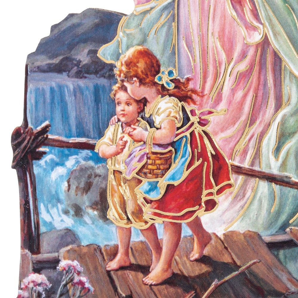 Statua Sagomata in legno con immagine dell'Angelo Custode.