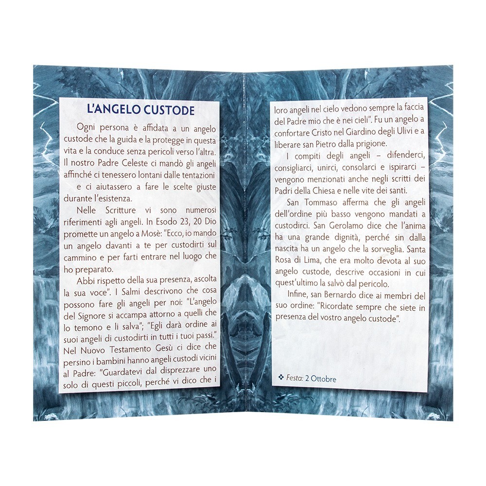 La statuetta è realizzata con base. Imbustata singolarmente. All'interno della confezione vi è la preghiera dell'Angelo di Dio e la biografia.