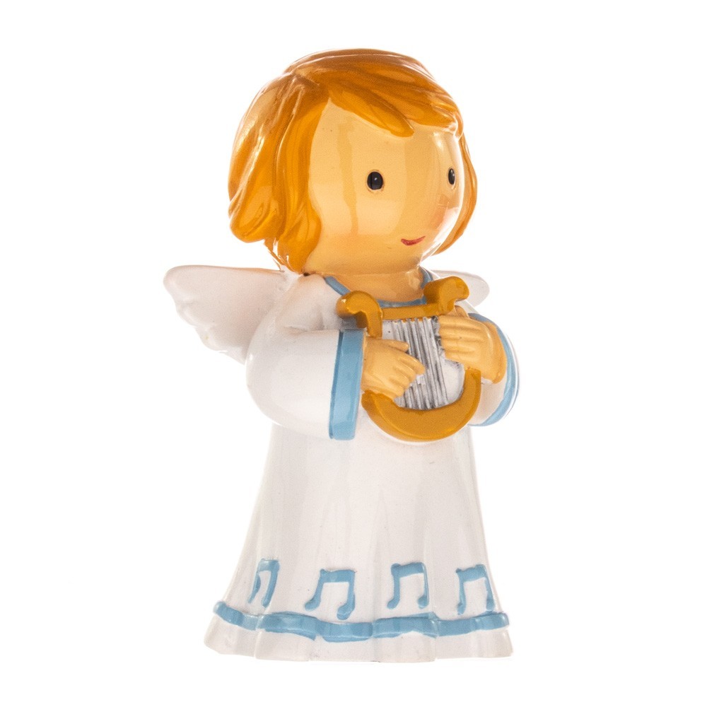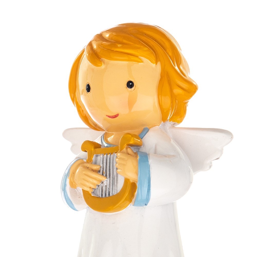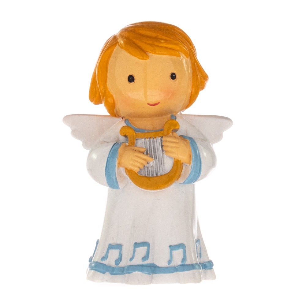 Statuetta in resina colorata per bambini Angelo con Flauto.