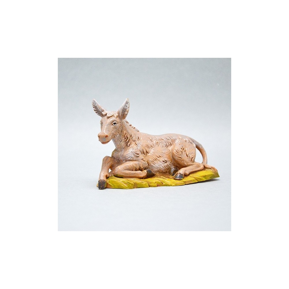 Asinello sdraiato proporzionato per natività da 12 cm. Realizzato in Italia e dipinto interamente a mano, dall'azienda Fontanini.