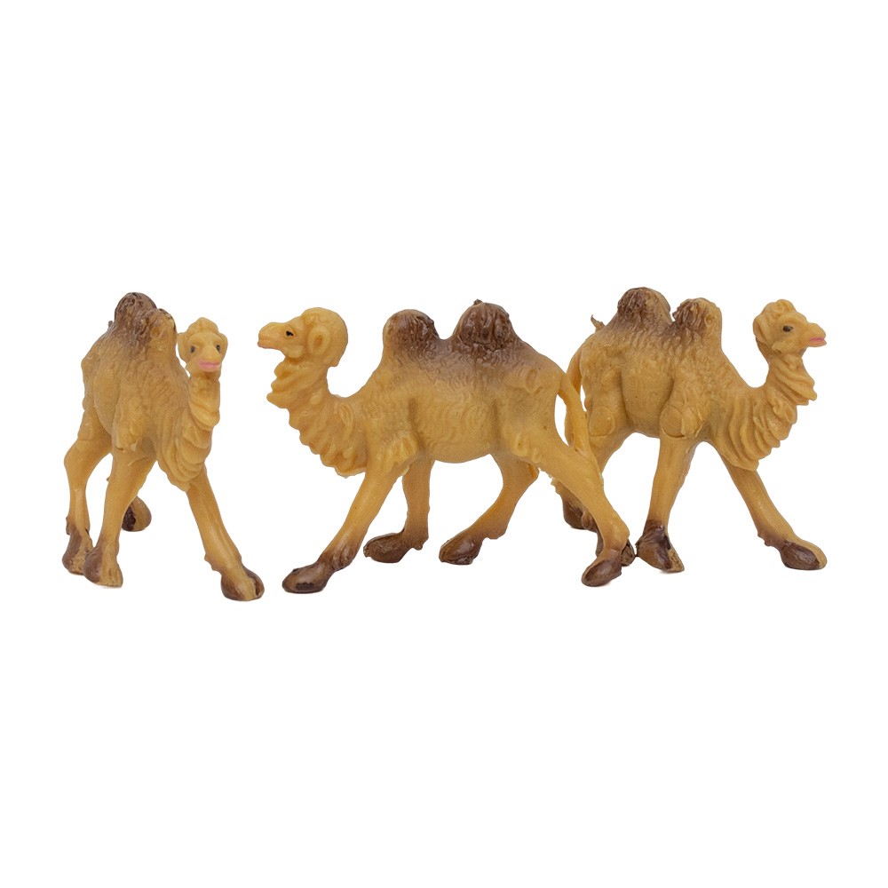 Gruppo 3 cammelli assortiti in plastica dipinti finemente a mano.