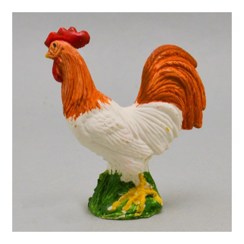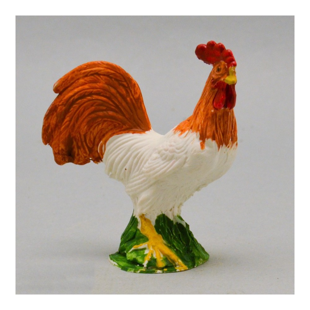Animale da cortile: Gallo collo Marrone (H 6,5 cm) realizzato in resina adatto a presepe da 10 - 12 cm.