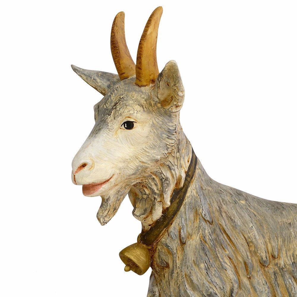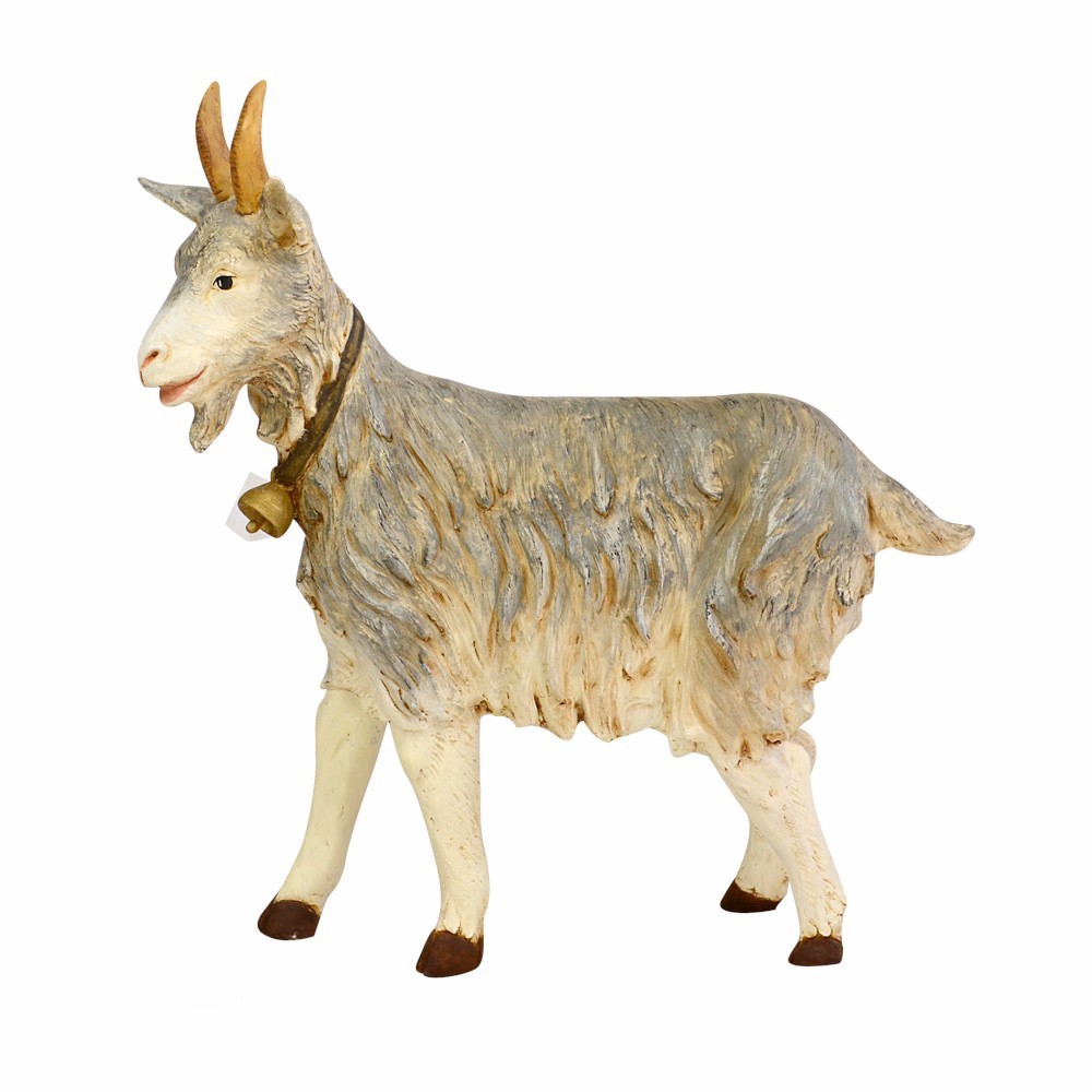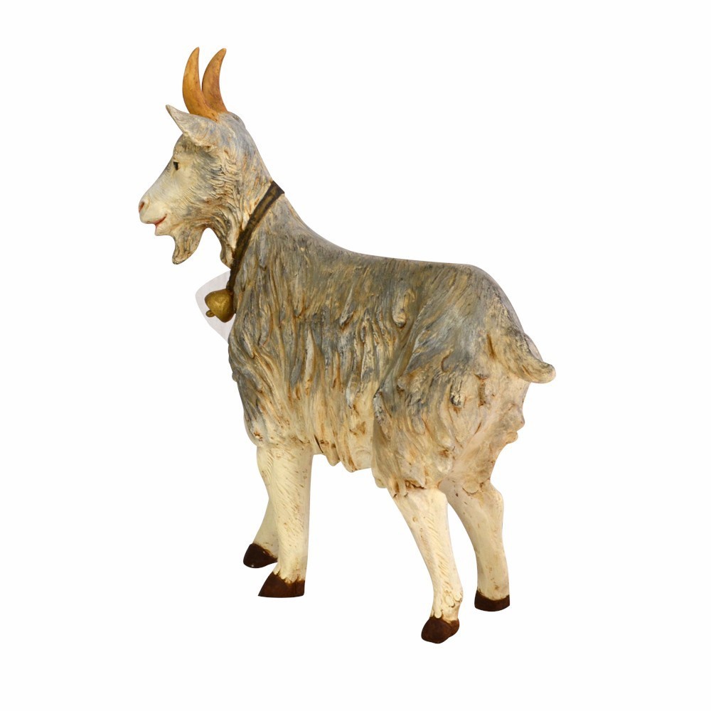 Capra in piedi proporzionata per statue di 125 cm di altezza. Ideale per presepi di grandi dimensioni, per piazze o oratori etc. Prodotta in Italia e dipinta interamente a mano, dall'azienda Fontanini.