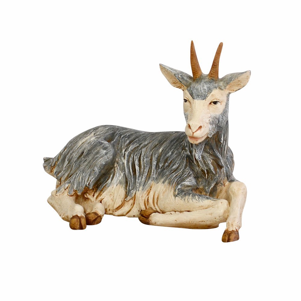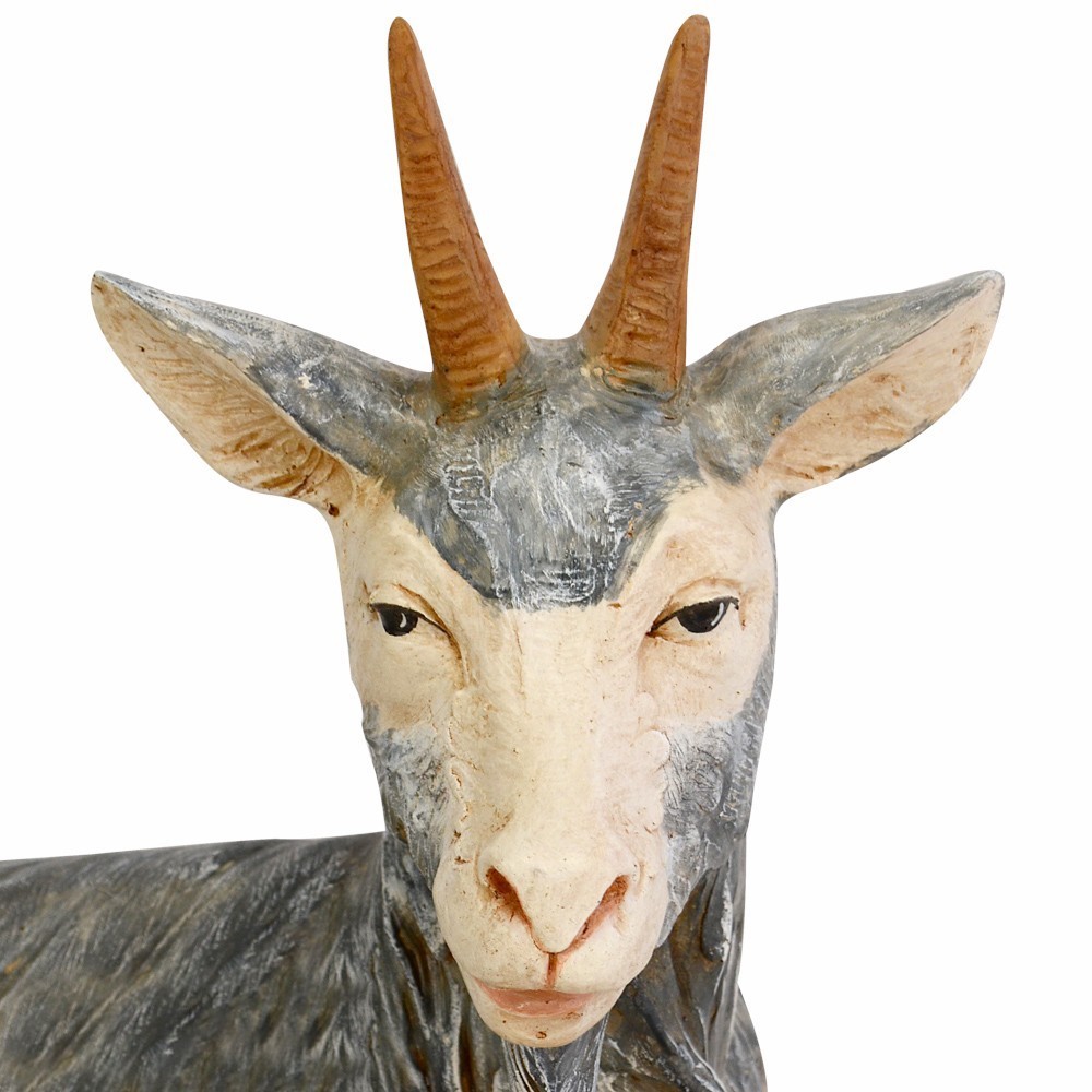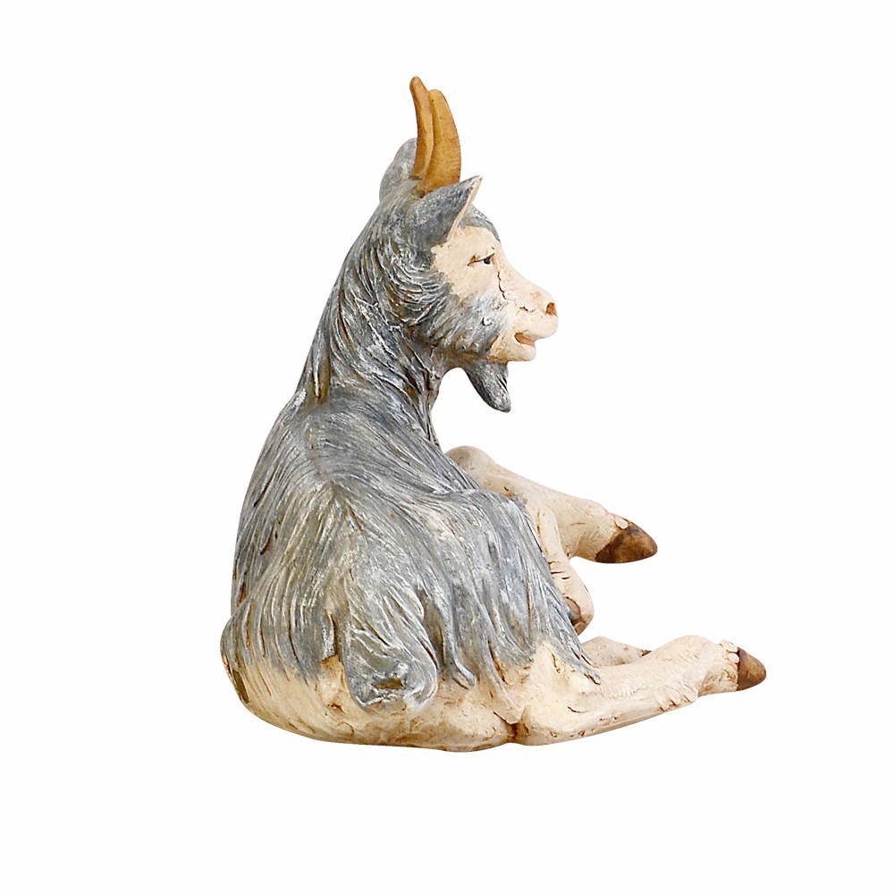 Capra seduta proporzionata per statue di 125 cm di altezza. Ideale per presepi di grandi dimensioni, per piazze o oratori etc. Prodotta in Italia e dipinta interamente a mano, dall'azienda Fontanini.