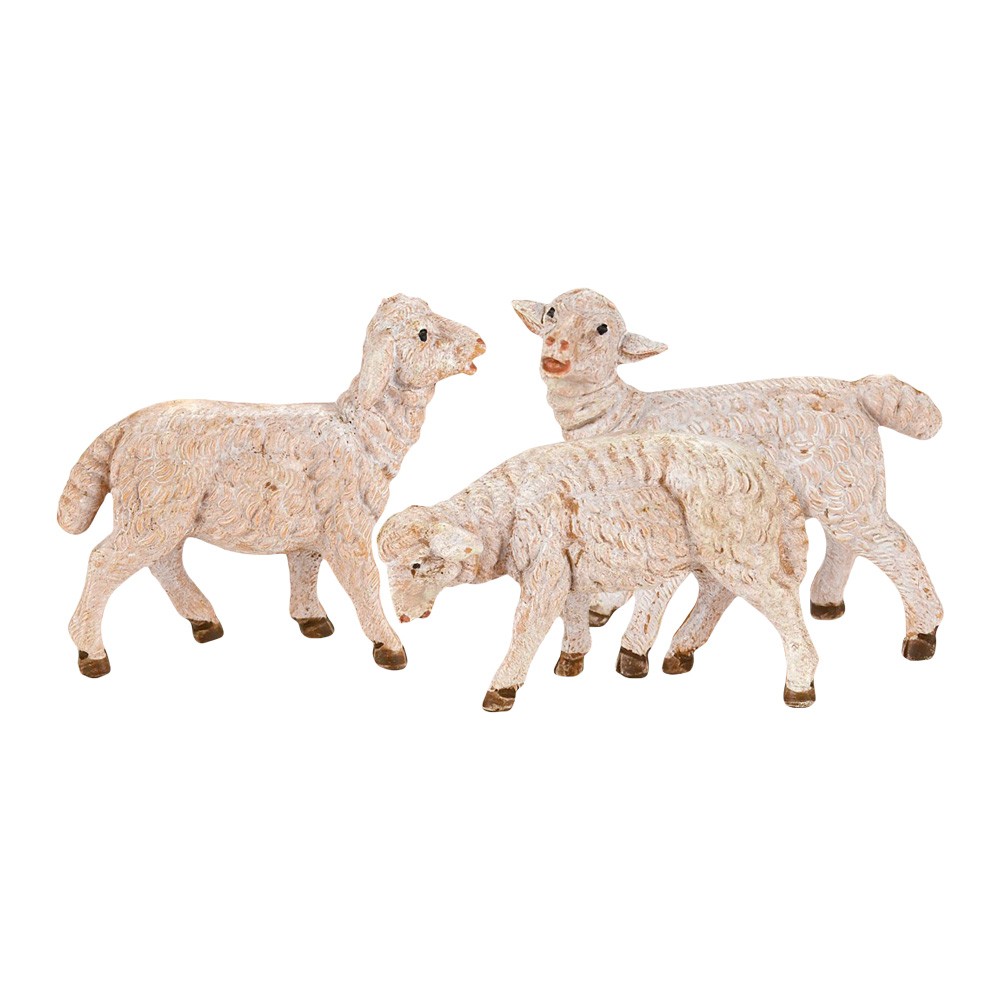 Set di 3 pecorelle in piedi proporzionate per statue presepe da 10/11 cm.