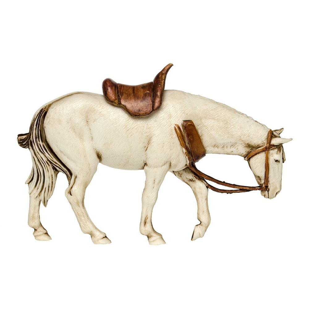 Set di due cavalli proporzionati a statue alte 10 cm. Confezione completa di due cavalli assortirti in PVC, dipinti finemente a mano.