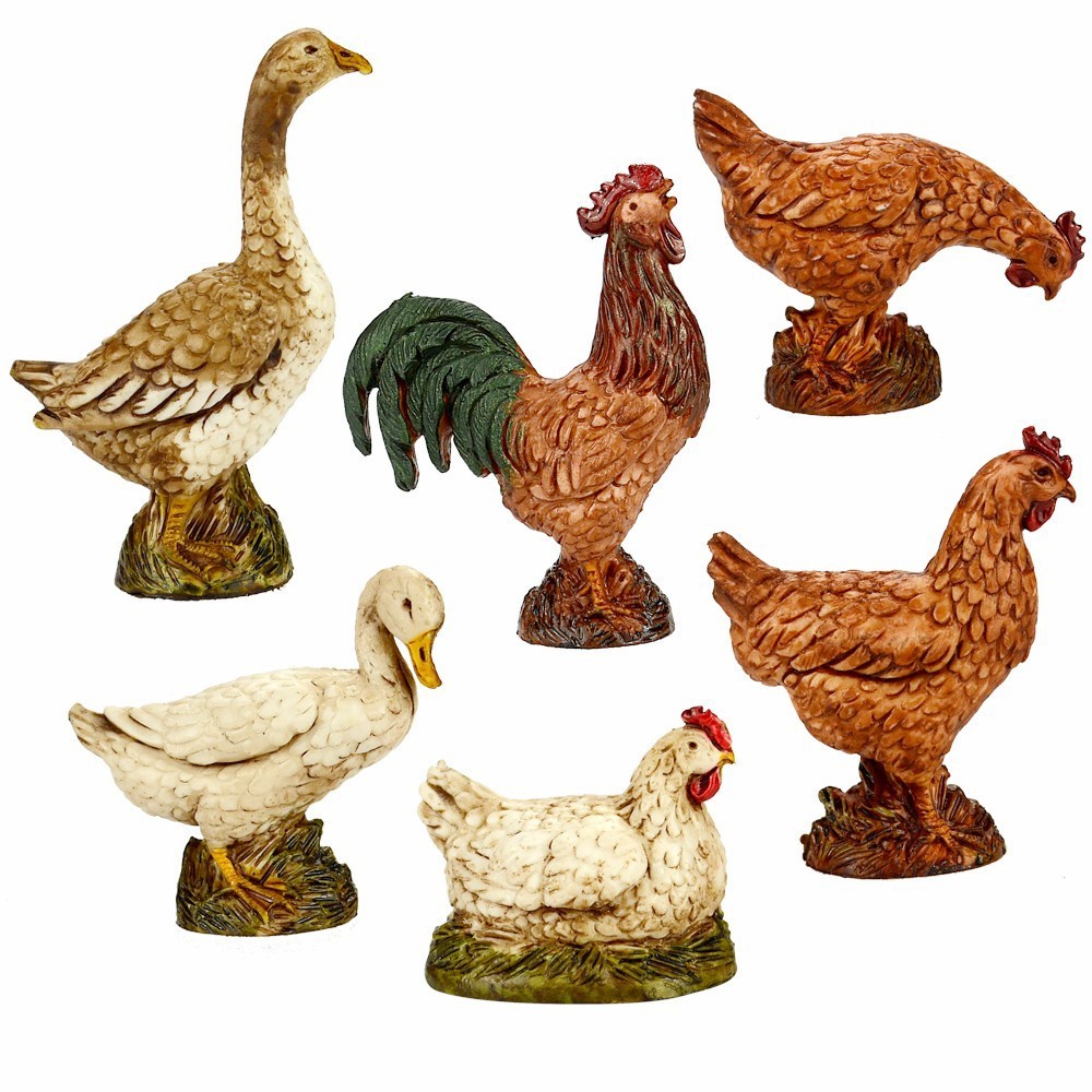 Galletti 6 soggetti assortiti proporzionati a statue alte 12 cm. Realizzati in PVC e dipinti finemente a mano.