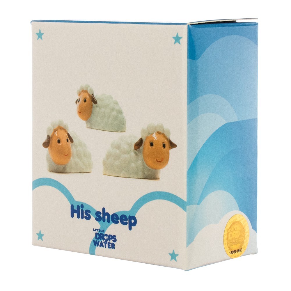 Gruppetto di tre pecore in resina. Queste pecorelle fanno parte della collezione Little Drops of Water. Vengono fornite complete di scatole personalizzate con preghiera sul retro.