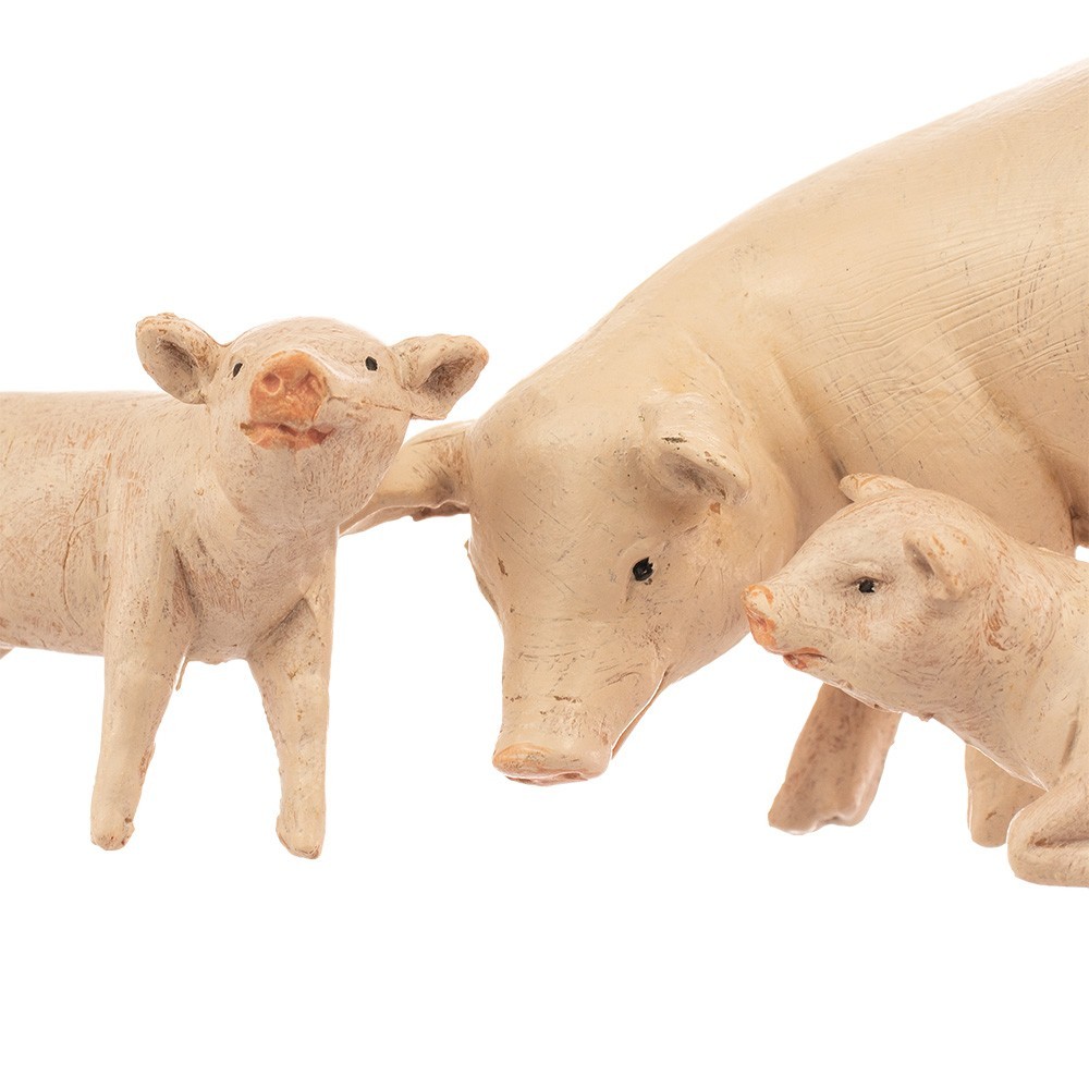 Famiglia di tre maialini proporzionate per il Presepe Fontanini da 19 cm.